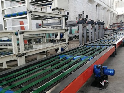 1、自动化程度高:整条生产线采用PLC电脑自动化控制,实现了自动上模板、自动涂脱模剂、自动配料、自动上浆、自动铺布、自动摊平、自动分切、自动复压、自动接板等自动化功能。
